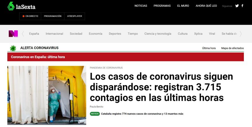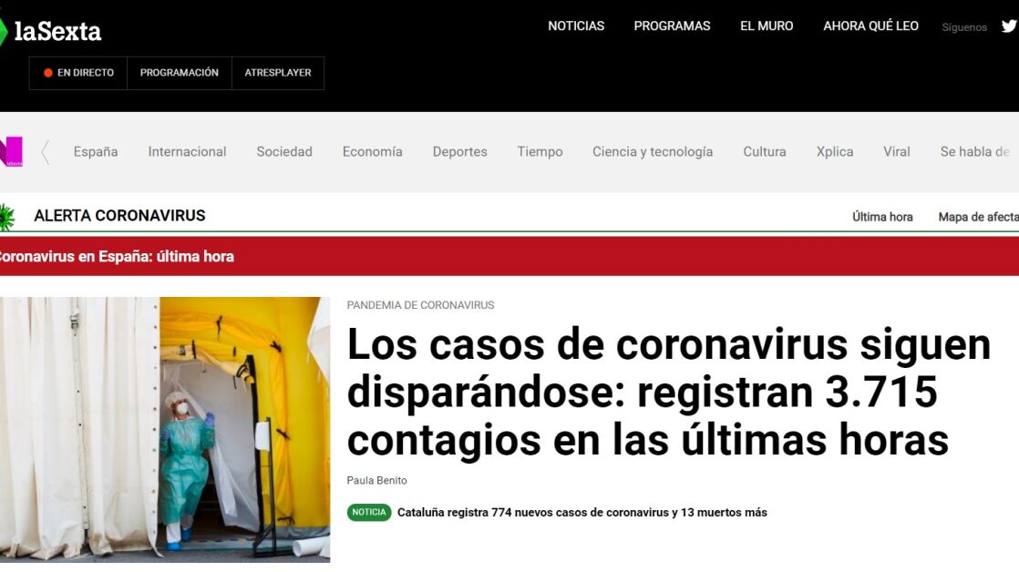 La web de laSexta logra 8,3 millones de visitantes únicos y un crecimiento interanual de 8% respecto a julio de 2019.