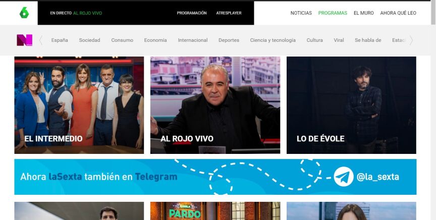 La web de laSexta se convierte así en el segundo site más visitado entre las televisiones privadas en España, sólo por detrás de antena3.com, que reunió a 12,2 millones de usuarios únicos en abril de 2020.