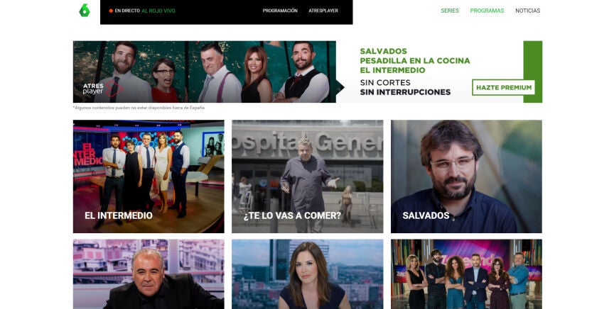 2019 ha sido el año en el que Grupo Atresmedia afianzaba su nuevo Atresplayer con lo mejor de Atresmedia y lo mejor de las OTT en una sola plataforma de vídeo. Con vocación multiplataforma, el nuevo diseño incluye nuevas funcionalidades: la mejor calidad en imagen y sonido, control del directo, descarga de capítulos para ver offline, acceso a todos los contenidos de los últimos 7 días, personalización y recomendación... Con un solo play, el usuario puede elegir la mejor forma de disfrutar de la plataforma donde están disponibles clásicos de laSexta como Dónde estabas entonces, Salvados, Al rojo vivo, Más vale tarde, El Objetivo, El Intermedio, o el entretenimiento de Zapeando, Liarla Pardo y Arusitys.