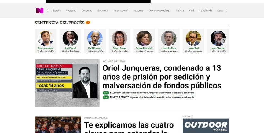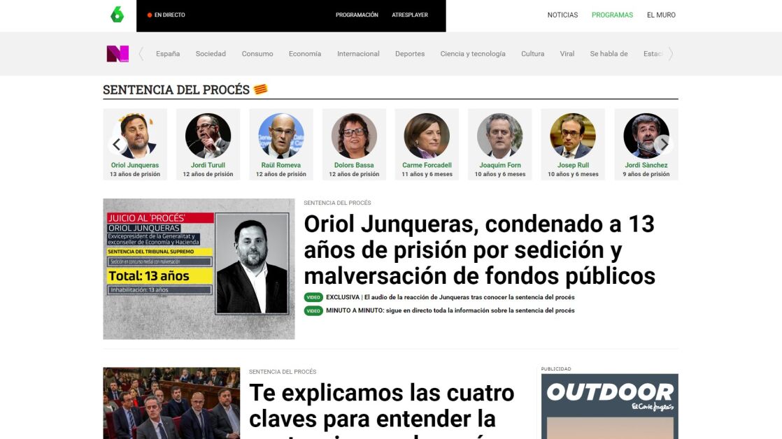 Las amplias coberturas informativas de la sentencia del procés o la exhumación de Franco del Valle de los Caídos, junto al éxito de los programas de la cadena también en la web, hacen que laSexta.com debute con fuerza oficialmente en el ránking de medios generalistas de información que elabora Comscore en competencia con el resto de cabeceras informativas del país.