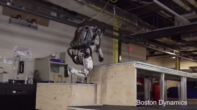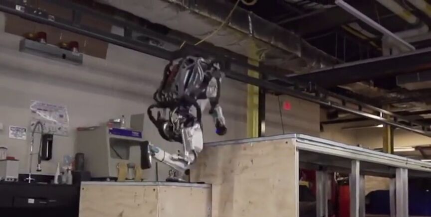 Atlas, el que en su página web definen como "el robot humanoide más dinámico", es capaz de hacer diferentes piruetas que le hacen parecer un experto en 'parkour'. Y todo eso después de que hace unos pocos años, apenas mantuviera el equilibrio sobre una pierna. Sin embargo, el grupo todavía no lo ha puesto en venta.