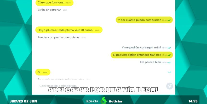 Cuando intentamos hacer la compra de Saxenda en una de esas páginas, la plataforma veta la conversación por "inclumplir las normas de convivencia". Pero volvemos a intentarlo y, a través de otro anuncio, contactamos con la misma persona, que reconoce que esta situación es algo que para con frecuencia. "Si quieres ir por la vía legal, tienes que ir al médico. Esto, ya sabes, es la España profunda", afirma la persona al otro lado de la pantalla.