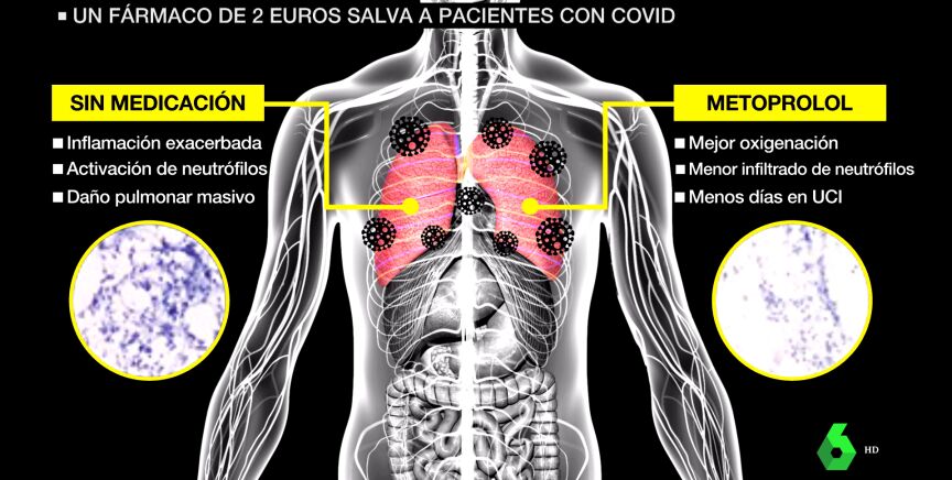 En esta línea, para Ibáñez, "aunque debemos ser cautos, ya que se trata de un estudio piloto inicial, hemos observado que el tratamiento con metoprolol en este contexto clínico es seguro, se asocia a una reducción muy significativa del infiltrado inflamatorio alveolar pulmonar, y esto parece derivar en una mejoría muy rápida de la oxigenación de los pacientes".