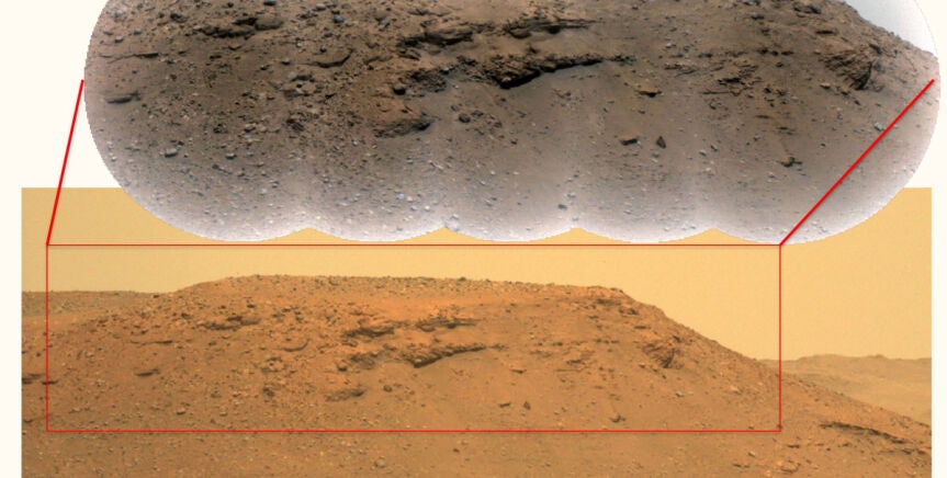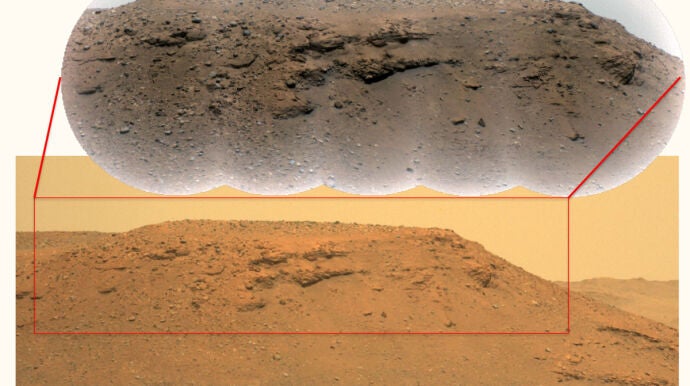 Una vez que el rover envió las imágenes a la Tierra, el equipo científico del Perseverance de la NASA las procesó y combinó, y pudo observar distintos lechos de sedimentos a lo largo del monte Kodiak con una resolución sorprendentemente alta.