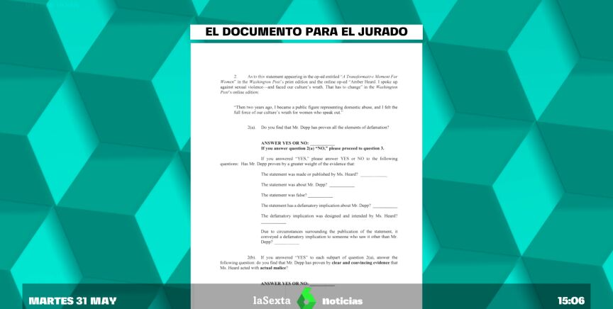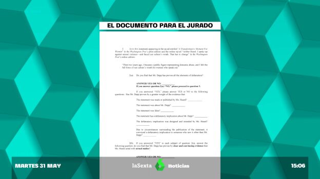 Se trata, por tanto, de un juicio por difamación por lo que la juez ha remitido a los miembros del jurado popular un formulario con diversas preguntas en las que no aparece la palabra culpable o inocente, sino que deberán señalar si ha habido realmente difamación o no y la cuantía que estiman oportuna en caso de indemnización: tanto por daños punitivos y por daños compensatorios.