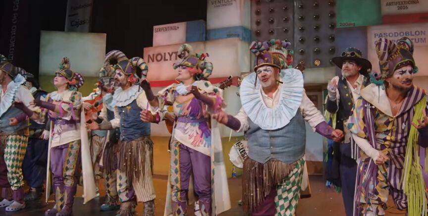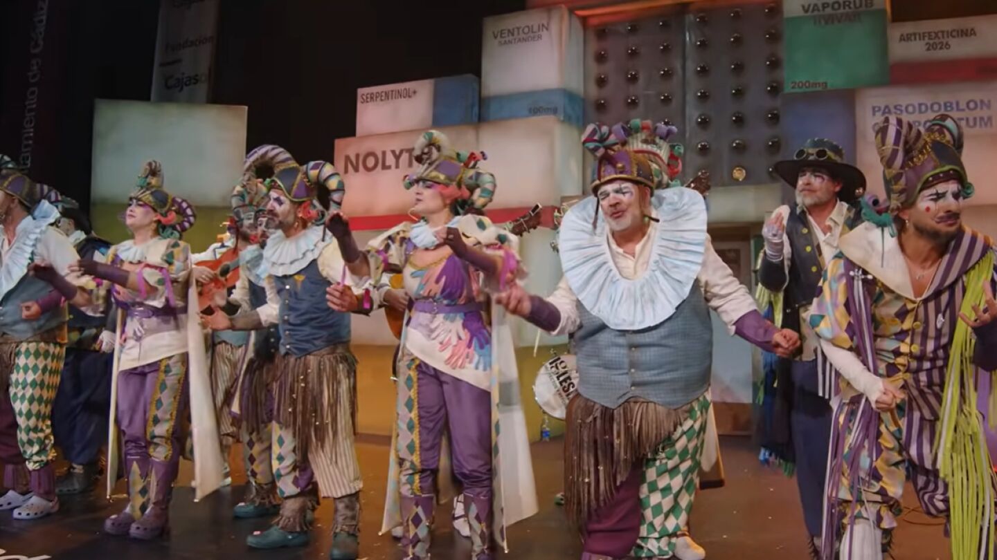 En 2025 la comparsa de Jesús Bienvenido, Las ratas, obtuvo el primer premio en su modalidad; en 2026, DSAS3, apunta maneras. Con un precioso tipo que interpreta al bufón, clásica e histórica figura del humor, la comparsa llegó al Gran Teatro Falla de Cádiz con una dura crítica al desmantelamiento de la Sanidad andaluza, que este año ha sido una de las grandes protagonistas de muchos repertorios. "Y mire por su suerte, que los que ya han perdido su salud no le temen a la muerte", cantaba el grupo antes de entonar su "¡Desastre! ¡Todo es un desastre!".
