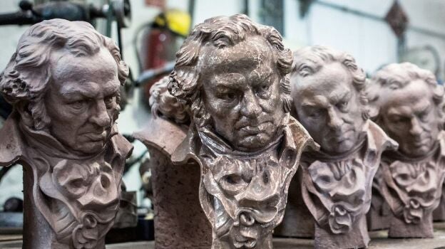 Los coloquialmente conocidos como 'cabezones' con la imagen de Goya son fabricados cada año con carácter exclusivo y solo se hace uno por cada categoría. Si la obra premiada tuviera a más de una persona física responsable de la categoría, la Academia podría autorizar, previa petición expresa, la creación de duplicados. El coste de estos correría a cargo de los interesados.