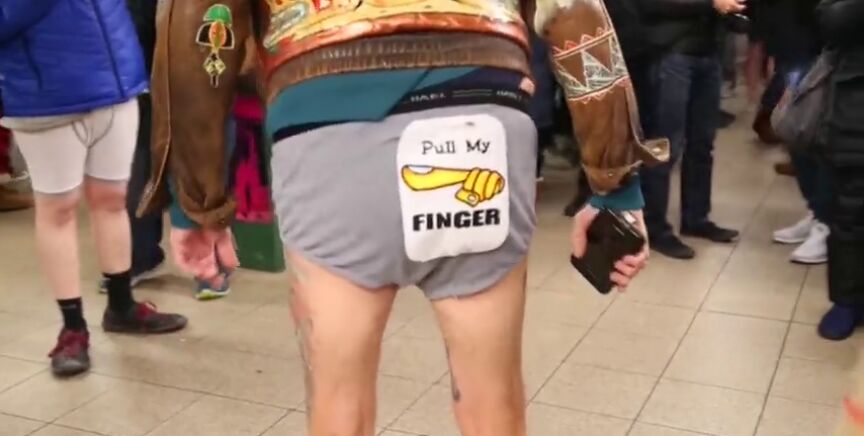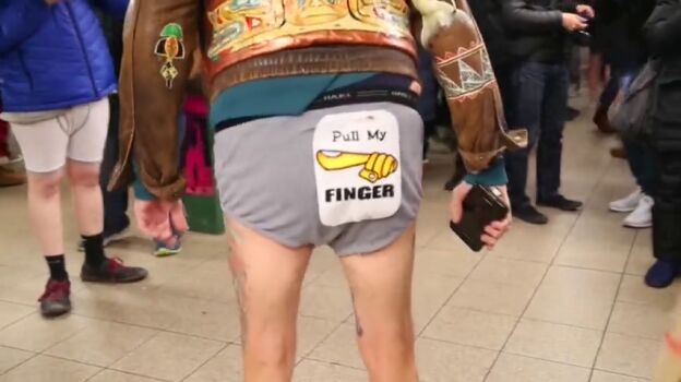 Desafiando el frío, cientos de personas se quitan los pantalones para enseñar su, a veces sí y a veces no, original ropa interior y esperar al metro. Así se ha celebrado el Día Mundial sin Pantalones en el Metro inventando en Nueva York en 2002 por un grupo de actores y que ahora ha traspasado fronteras.