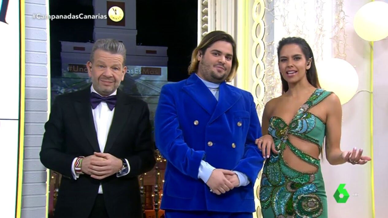 Por primera vez el reloj de la madrileña Puerta del Sol retrasaba sus agujas una hora para dar las Campanadas de Canarias. Cristina Pedroche, Alberto Chicotey Brays Efe fueron los maestros de ceremonias en la retransmisión de laSexta.