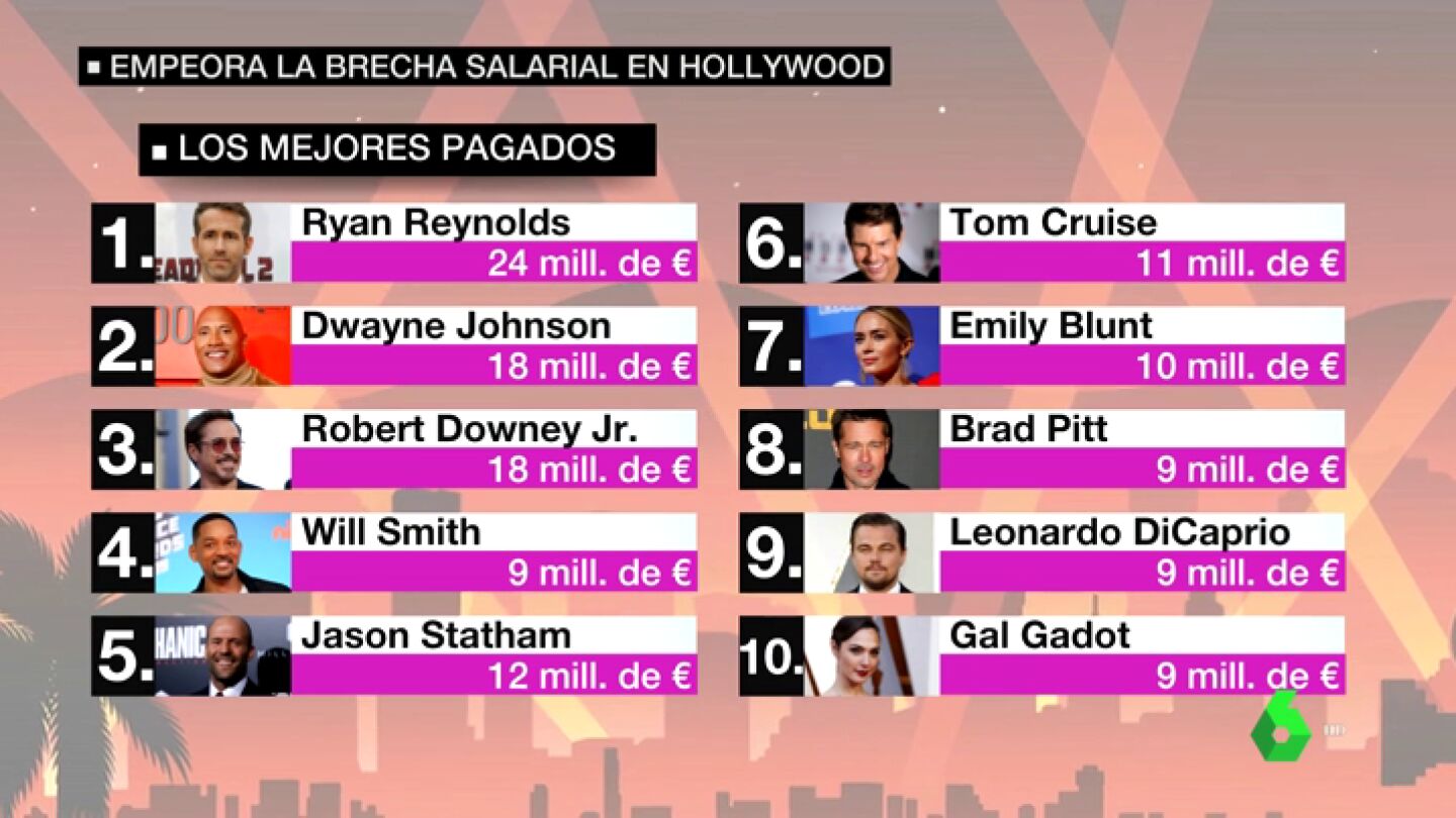 Empeora la brecha salarial en Hollywood: el 'top 10' de los actores mejor pagados solo tiene dos mujeres