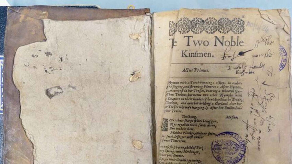 Un investigador de la Universidad de Barcelona (UB) ha hallado en el Real Colegio de los Escoceses de Salamanca "lo que los indicios señalan" como el primer ejemplar de la tragicomedia 'The two noble kinsmen' (Los dos nobles caballeros en español) llegado a España.