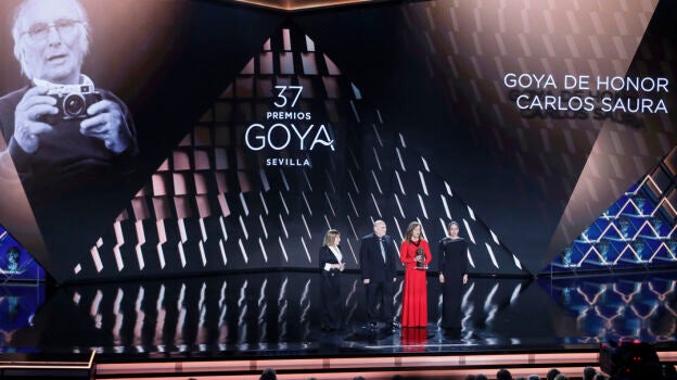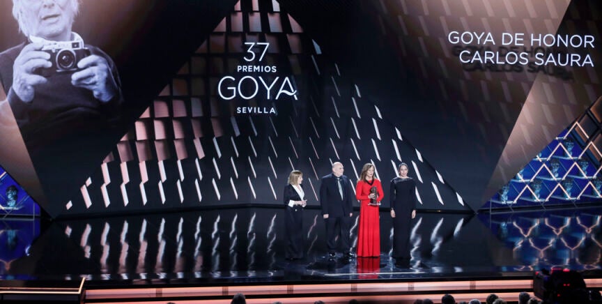 La 37 edición de los Premios Goya en Sevilla ha arrancado con un homenajeal cineasta recientemente fallecido Carlos Saura, en el que su pareja Eulalia Ramón ha leído una nota póstuma en la que el cineasta agradece los reconocimientos recibidos y afirma haber sido "muy afortunado".