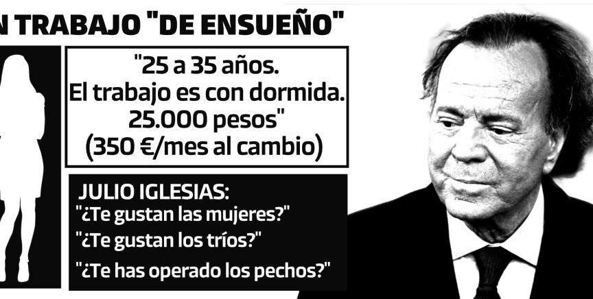 El relato de las trabajadoras que acusan a Julio Iglesias de abusos sexuales, dominación y condiciones de trabajo muy irregulares revela un 'modus operandi' del artista. Según detallan a 'elDiario.es' tras una investigación de tres años, el ambiente de trabajo era de acoso y terror. Rebeca (nombre ficticio) es una de esas jóvenes mujeres que han dado el paso de señalar al cantante.