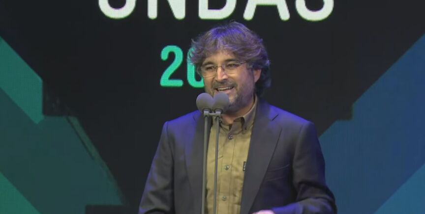 Jordi Évole canta 'Grita' en honor a Pau Donés tras recibir el premio Ondas a mejor documental por 'Eso que tú me das'