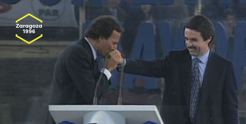 En plena campaña electoral, Julio Iglesias subía al escenario de la Plaza de Toros de Zaragoza y se dirigía a José María Aznar con palabras que no dejaban lugar a dudas: "Mi querido presidente. Qué gusto estar contigo sabiendo que te quiero de verdad… ¡Un beso enorme!"