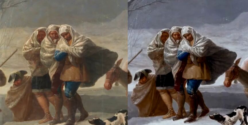 'La Nevada' de Francisco de Goya, ha vuelto a la vida. Estaba amarilla porque el barniz estaba oxidado pero según iban avanzando las labores de la restauración, la nieve iba retomando el protagonismo.