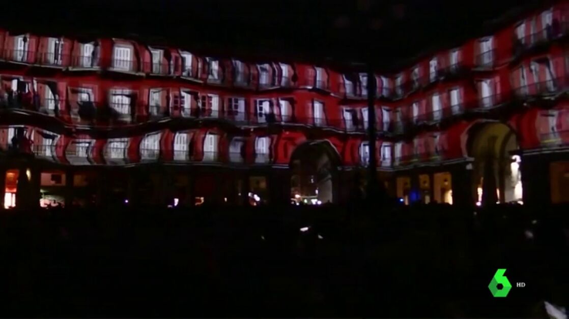 Como por arte de magia, las icónicas fachadas de la Plaza Mayor de Madrid se deshacen, para dar paso a un espectáculo de luz y color.