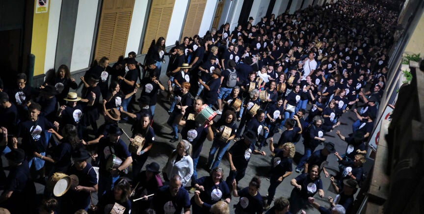 Para lograrlo, indicó Llanera, se escogió el tajaraste "porque representa de maravilla a los canarios", ya que se trata de un género prehispánico, es decir, anterior a la conquista castellana del archipiélago, un hecho que dota a este hito de "un fuerte orgullo". Consiste en un baile en parejas enfrentadas o en cuadro, con un ritmo corto sobre el que los bailadores dan pequeños saltos mientras, en este caso, avanzaban por la calle Viana con un estilo procesional, en el que los tocadores se situaban en el medio y el resto a participantes a los lados, formando una gran masa de personas bajo el potente golpeteo de las percusiones.