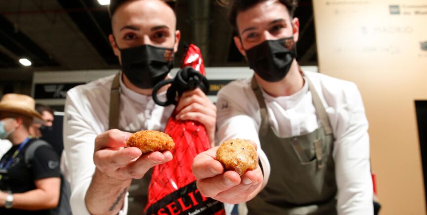 Tan solo 24 horas después de obtener el premio de 'Cocinero revelación del año' en Madrid Fusión, Javier Sanz y Juan Sahuquillo han vuelto a triunfar. Ahora, con una distinción distinta: la del premio a 'Mejor croqueta de jamón'.