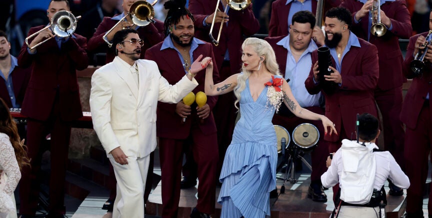 Lady Gaga sorprendió a todos al aparecer en la Super Bowl para cantar 'Die With a Smile' con Bad Bunny, con el que también se arrancó a bailar. Ricky Martin fue otro de los artistas invitados.