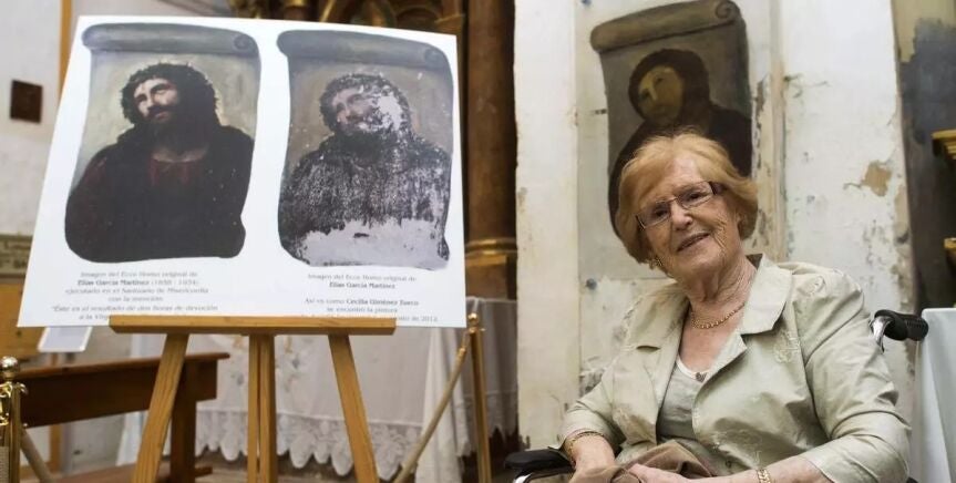 Cecilia Giménez era pintora aficionada y en 2012 recibió el encargo de restaurar una de las obras de la capilla del Santuario de la Misericordia de Borja. Concretamente, el Ecce Homo, que había sido ejecutado por Elías García en 1923. No era la primera vez que realizaba estos trabajos y todos los anteriores habían sido un éxito.