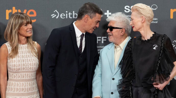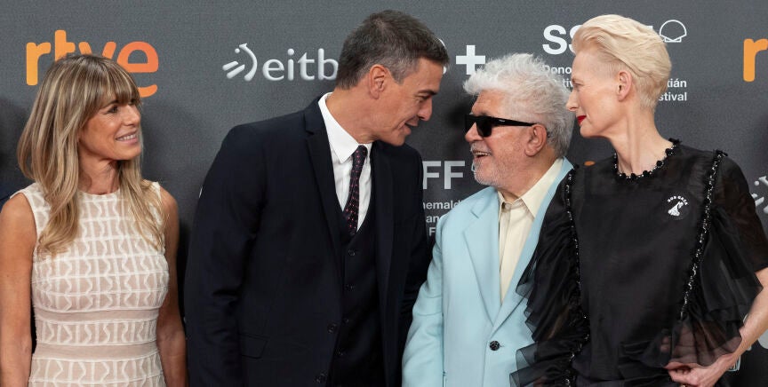 Pedro Sánchez y Begoña Gómez, con Pedro Almodóvar en el Festival de Cine de San Sebastián
