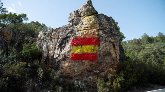 Allí se encontraban con el dibujo de una "gran bandera de España realizada sobre unas pinturas rupestres que están datadas entre hace 6.000 y 7.000 años".