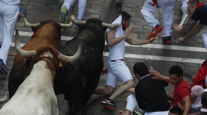 Por otro lado, los animales se han situado prácticamente desde el principio del encierro a la cabeza, una situación que dista mucho a la de los días anteriores.