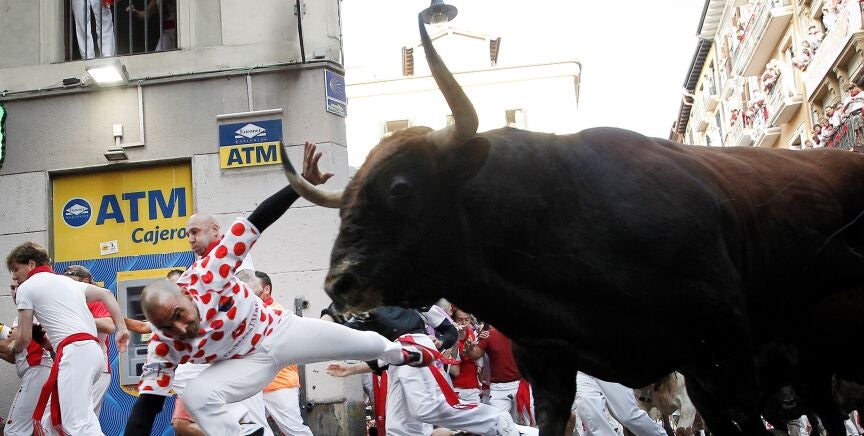 Después de que las campanas de la iglesia de San Cernin hayan anunciando las ocho de la mañana, se ha prendido la mecha que ha abierto el portón de los corrales de los que han partido los astados, encabezados por los cabestros, a los que rápidamente ha rebasado un toro colorado, al que se han sumado varios de sus hermanos llegando en algunos momentos hasta situarse cuatro toros en cabeza.