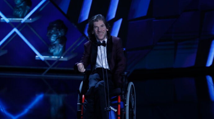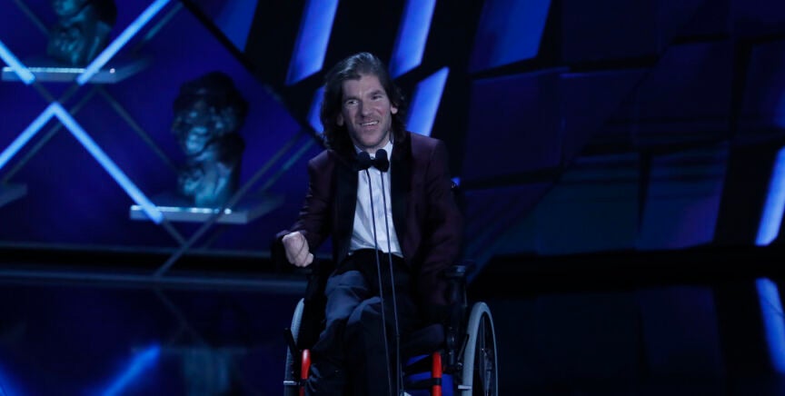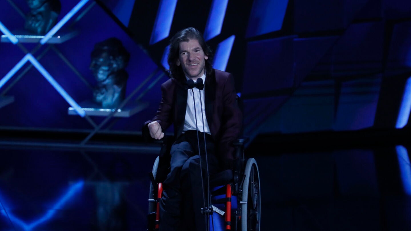 "Muchas gracias, estoy muy contento y algo bloqueado", ha reconocido, lo que no ha sido traba para reivindicar desde su silla de ruedas "un cine más inclusivo y con cuerpos de todo tipo". "Y gracias a mi personaje, David, porque es un guiño a los derechos de las personas como yo, a la sexualidad, porque nosotros también existimos y también follamos", ha manifestado.