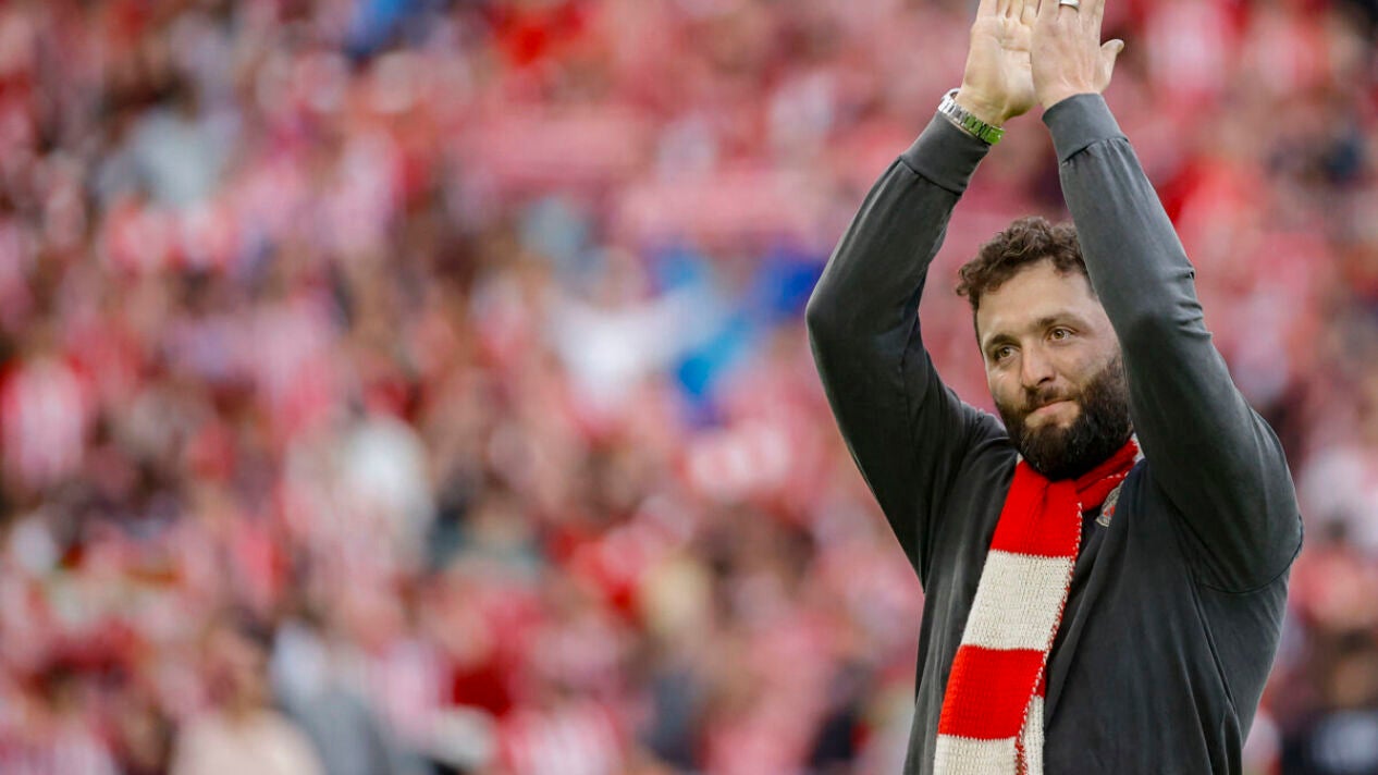 Jon Rahm fue el encargado de realizar el saque de honor del partido entre el Athletic y el Atlético en San Mamés. El saque de honor de un partido que acabó con victoria de los vascos, y con un equipo, el de Simeone, exhibiendo una más que pobre imagen que pareció no preocupar al entrenador argentino.