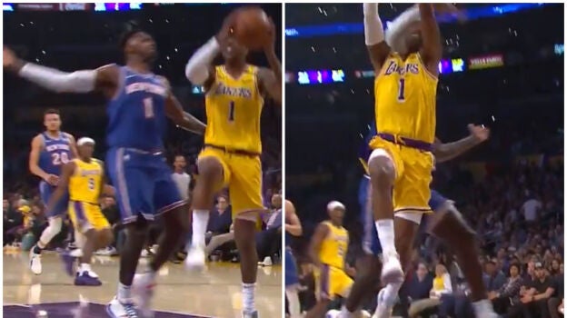 Tal fue la acción que no solo le costó irse directo a vestuarios sino que el jugador de los Lakers perdió hasta la cinta.