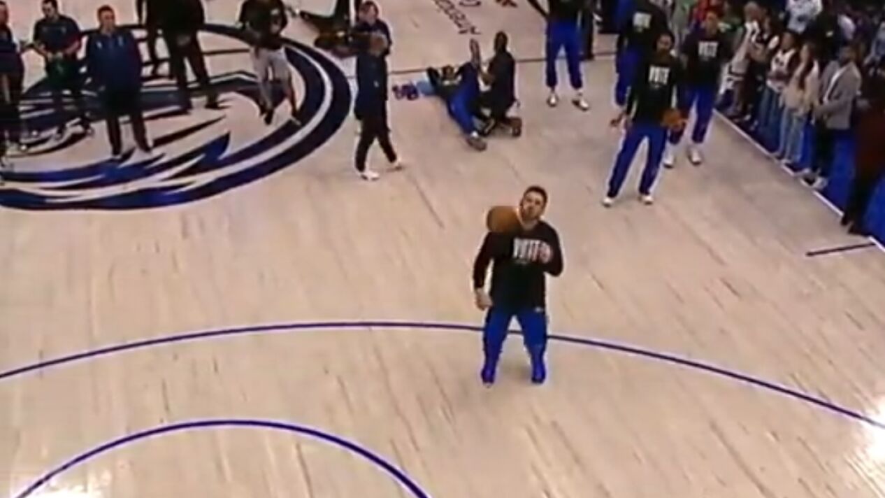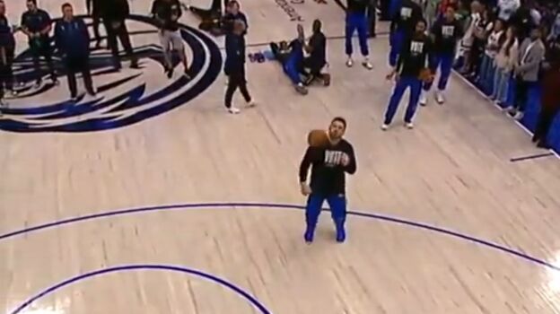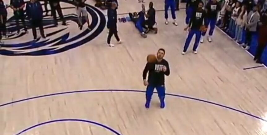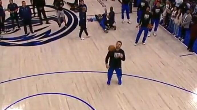 El esloveno hizo en el calentamiento previo al partido frente a los Brooklyn Nets una canasta imposible con el hombro, la cual celebró con mucha efusividad.
