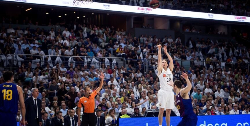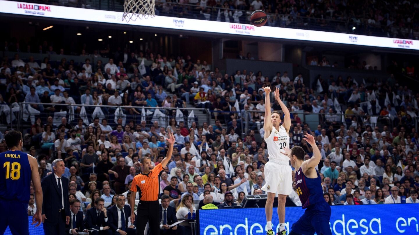 El Real Madrid está a una victoria de hacerse con el título de la ACB tras una remontada tremenda ante el Barcelona. Jaycee Carroll anotó el triple de la victoria en un partido vibrante.
