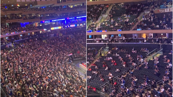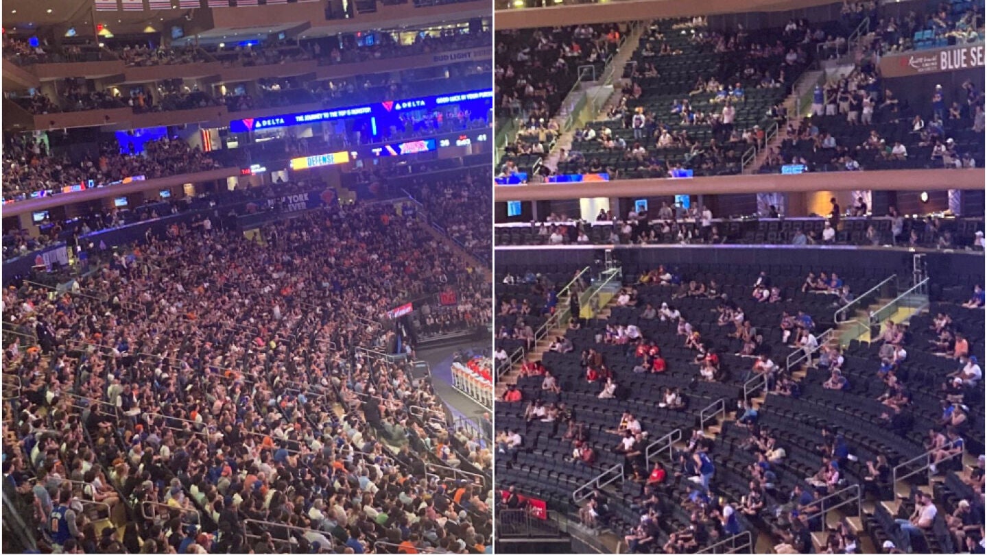 El primer partido de play off de la franquicia neoyorquina frente a los Atlanta Hawks en el Madison Square Garden contó con la presencia de 15.000 aficionados, el 75% del aforo del estadio.