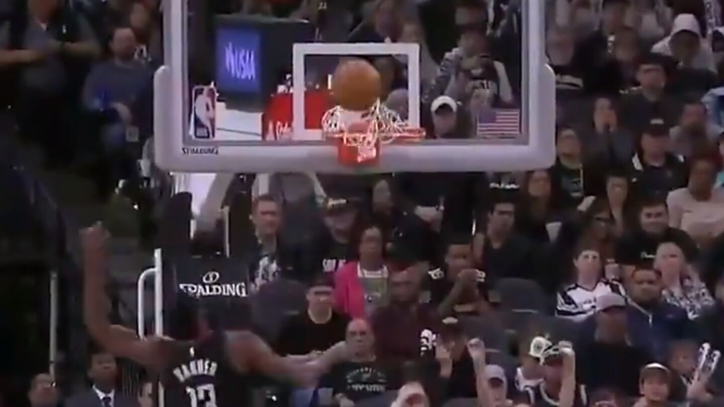 El Spurs-Rockets que se ha jugado esta madrugada en la NBA ha dejado una de las jugadas más extrañas que se recuerdan. James Harden realizó un mate que habría colocado el 104-89 en el marcador... pero que no contó.