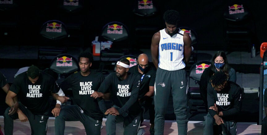 La victoria de los Orlando Magic sobre los Nets en la vuelta de la NBA en la 'burbuja' de Orlando trajo consigo la imagen llamativa de la jornada. Antes del salto inicial, durante la interpretación del himno de Estados Unidos, Jonathan Isaac, ala-pívot de los Magic, se mantuvo de pie mientras el resto de sus compañeros se arrodillaban.