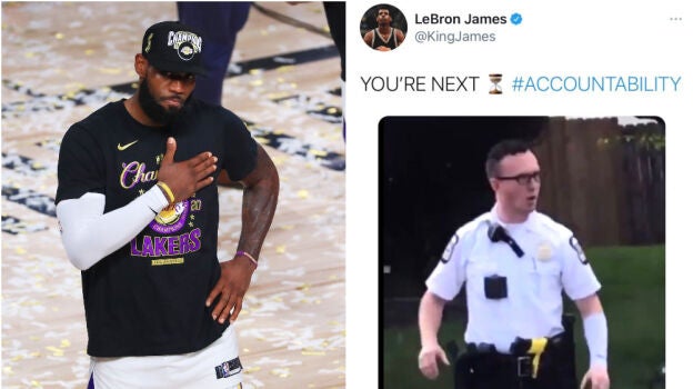 El jugador de los Lakers estalló en Twitter tras conocer la muerte de una adolescente afroamericana de 16 años, que murió por varios disparos de un policía. "Tú eres el siguiente", escribió LeBron junto a una foto del agente que había matado a la chica.