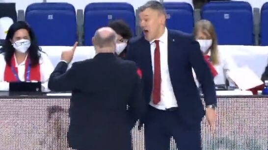 Pablo Laso y Sarunas Jasikevicius se enzarzaron en una discusión al término del Clásico de baloncesto entre Real Madrid y Barça basket que se saldó con victoria azulgrana.
