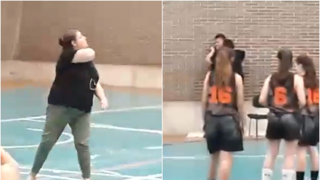 Una mujer pone contra la pared y amenaza a un árbitro en un partido de cadetes de baloncesto