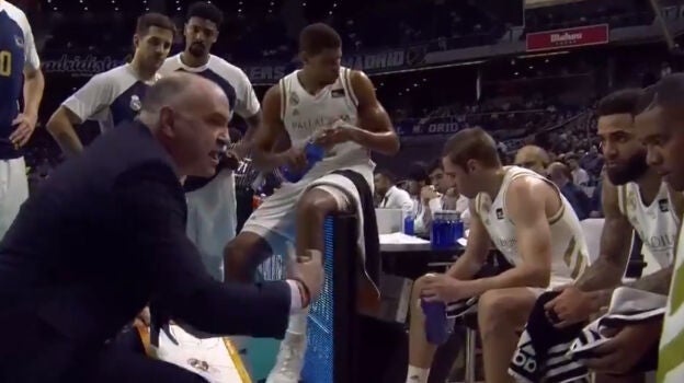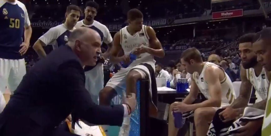 "¡Si no jugáis con un poco de energía vamos por detrás de ellos todo el p*** partido!", continuó el entrenador del Real Madrid de baloncesto.