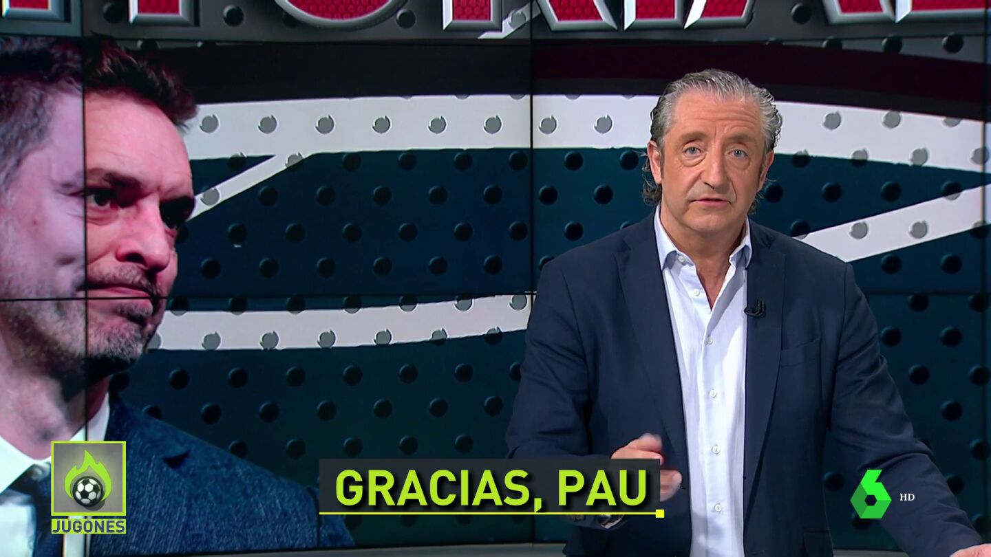 En su editorial en 'Jugones', Josep Pedrerol ha querido rendir homenaje a Pau, "un deportista ejemplar": "Se retira Pau Gasol, nuestro Pau. Ha sido un deportista ejemplar. Siempre compañero y humilde. Gasol nunca se metió en líos. Ni en la cancha ni fuera de la cancha... ni tampoco hizo política".