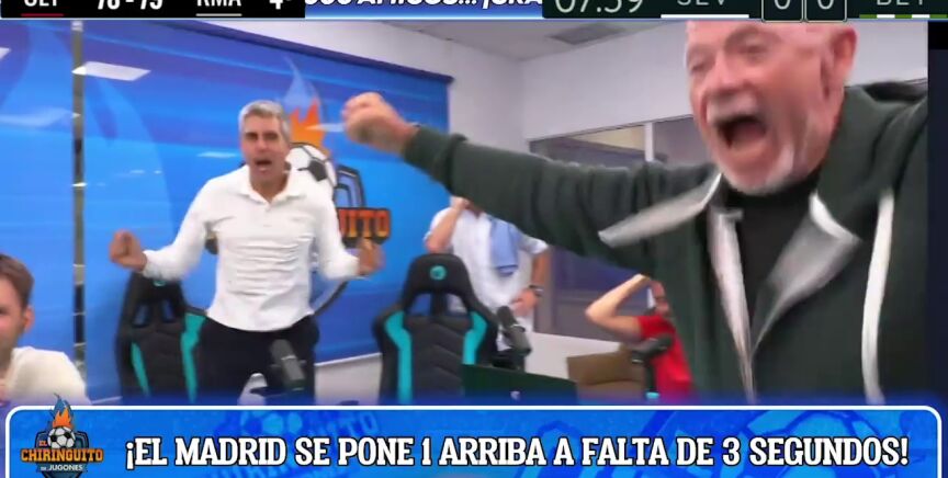 "Se la comen, se la comen... ¡Vamos, vamos! ¡Campeones, campeones!", grito José Luis Sánchez por la victoria madridista.