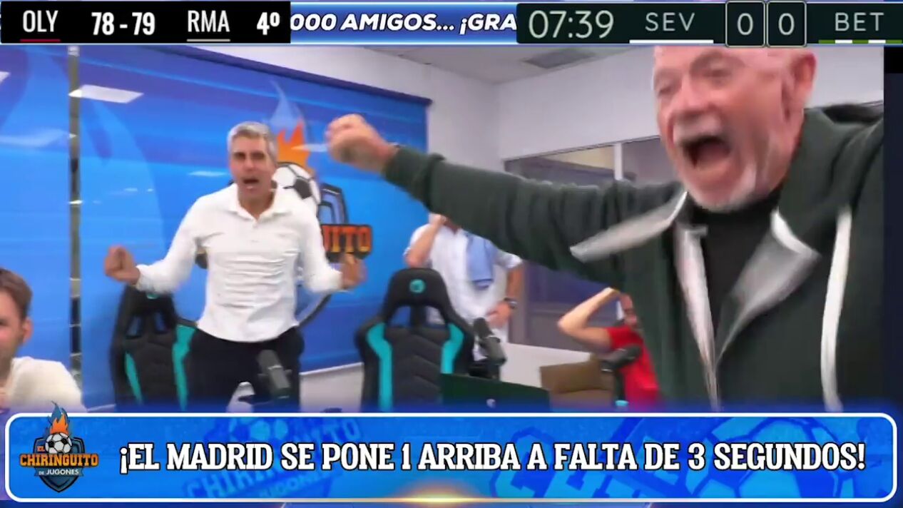 El Real Madrid ya tiene una nueva Euroliga en sus vitrinas. La Undécima Euroliga en sus vitrinas. Los blancos se impusieron a Olympiacos por 78-79 en Kaunas en un encuentro que se vivió con especial emoción en 'El Chiringuito'. Cuando sonó la bocina, tras la canasta de Sergio Llull, José Luis Sánchez y Alfredo Duro sacaron todo lo que llevaban dentro.