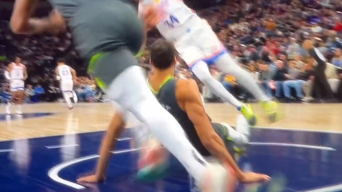 El pívot de los Timberwolves acabó expulsado tras soltarle una patada a un rival después de que le anotaran una canasta sobre él.