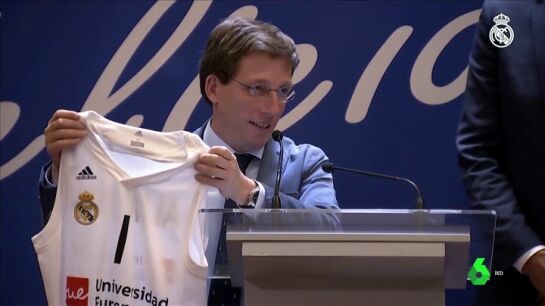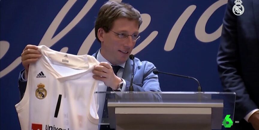 "Que quede claro que esta es la primera camiseta del Real Madrid que tengo en mi vida", dijo el alcalde, tras reconocer eso sí que el Real Madrid es "la imagen de la ciudad".