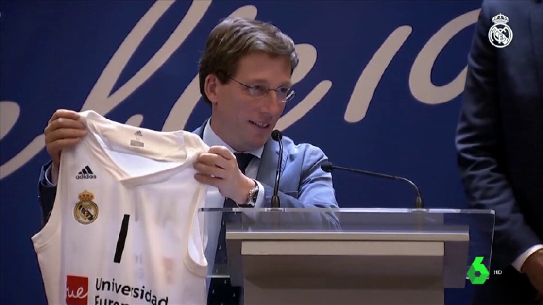 El Real Madrid ha ido de visita por la Comunidad y por el Ayuntamiento tras ganar su 35ª Liga ACB. Los blancos, con el recién elegido alcalde Martínez Almeida, han protagonizado el momento anécdota de la jornada... y es que el edil es un reconocido seguidor rojiblanco.