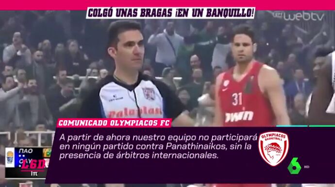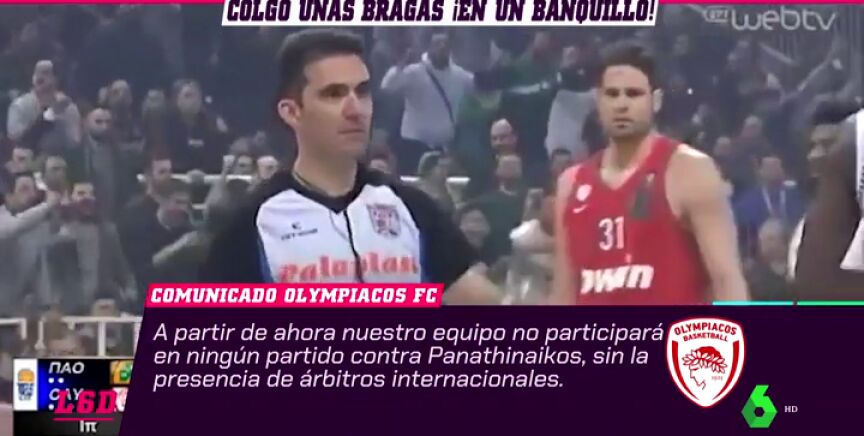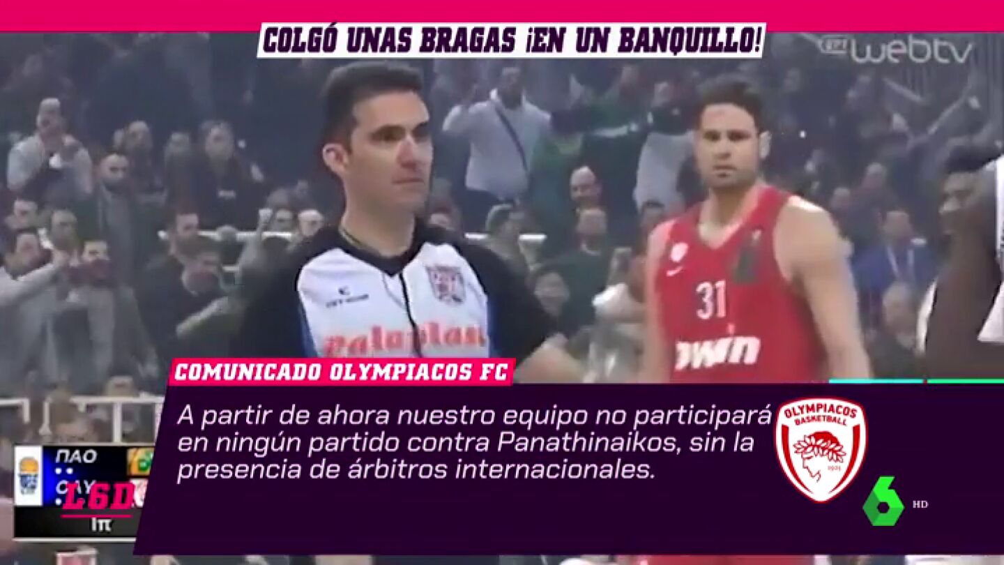 El derbi de Atenas, uno de los más calientes del baloncesto mundial, vivió un auténtico esperpento cuando los jugadores de Olympiacos decidieron retirarse en el descanso al sentirse perjudicados por el arbitraje. El presidente de Panathinaikos colgó unas bragas del banquillo de su rival.