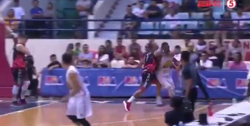 En la siguiente jugada, el ex jugador de Houston Rockets y New Orleans Pelicans cogía un rebote y en ese momento llegaba por detrás Abueva, apodado 'The Beast', para propinarle un doloroso puñetazo desde detrás que le impactó en el cuello.