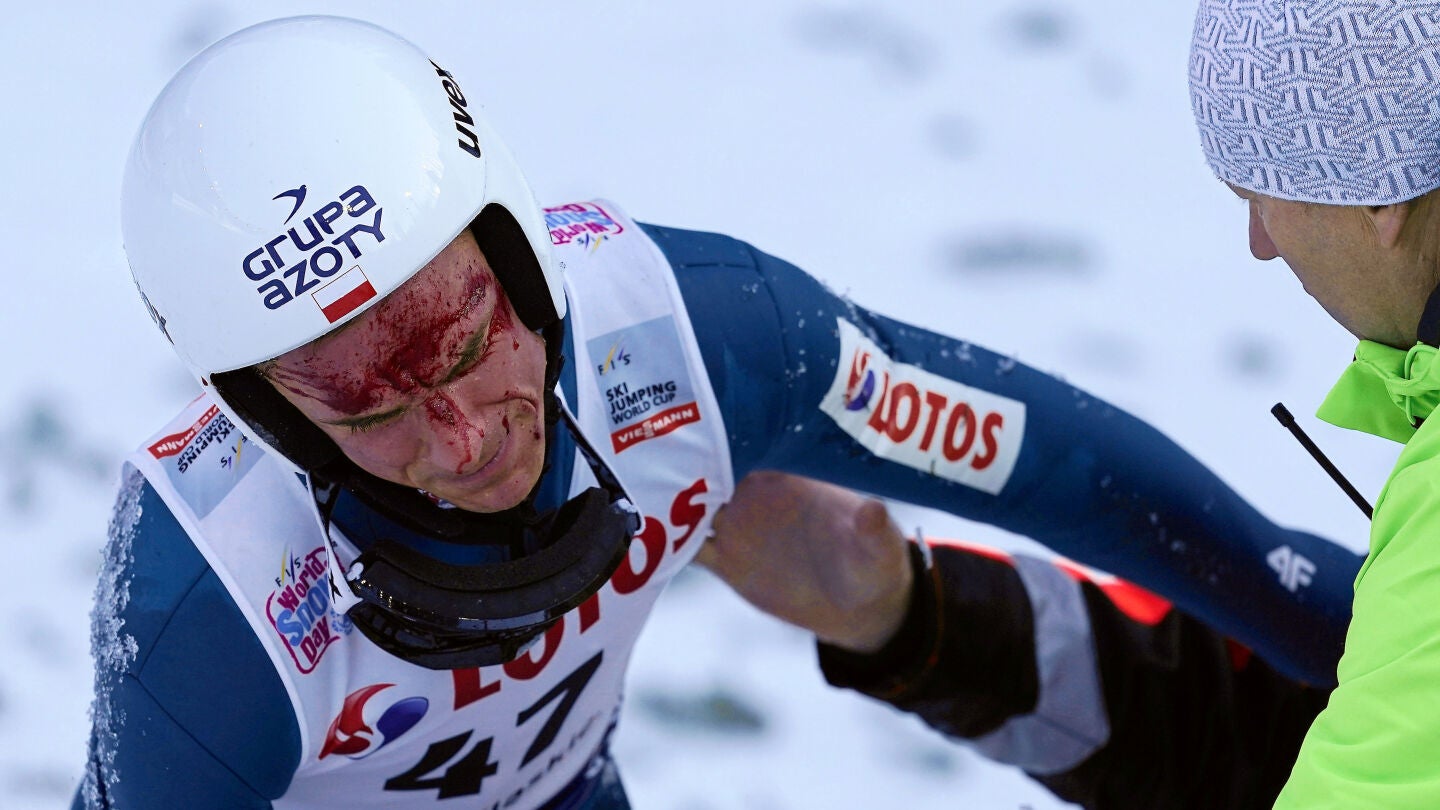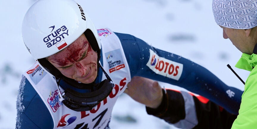Piotr Zyla es un saltador de esquí que competía con Polonía en la Copa del Mundo. Tras un salto de 119 metros, no consiguió mantener el equilibro al aterrizar en la nieve provocando un brutal accidente que lo dejaba ensangrentado e inconsciente durante unos segundos.